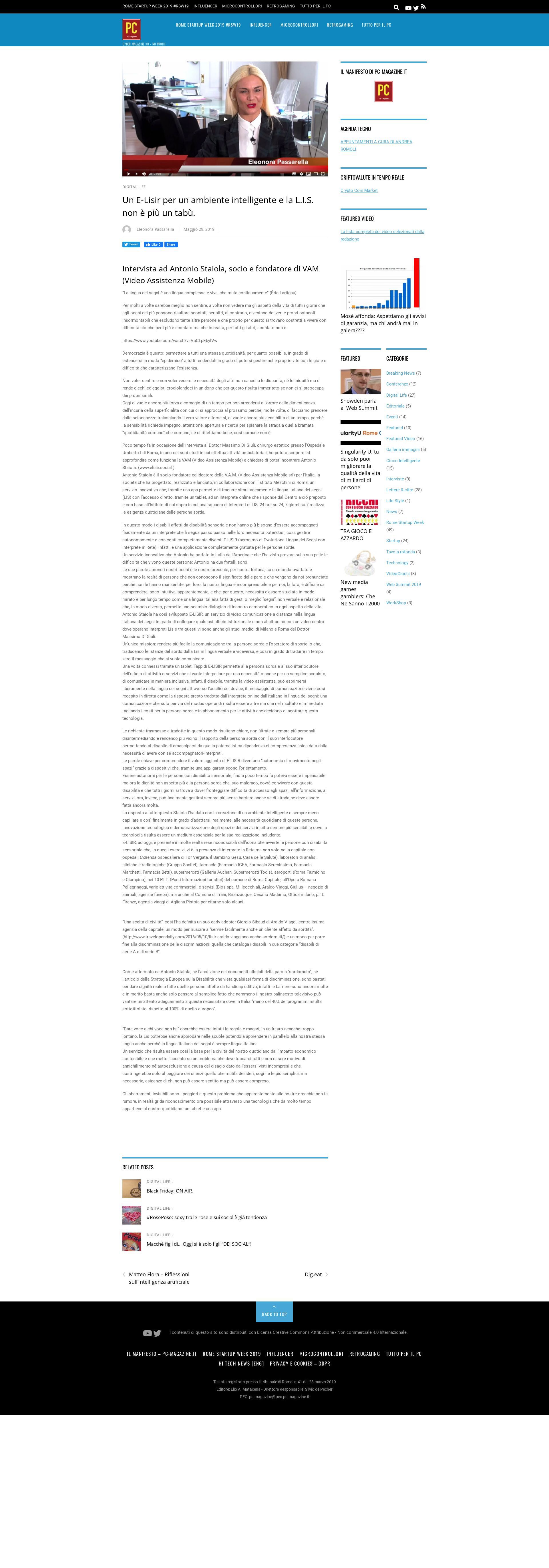29/05/2019 AUTORE - WEB REPORTER PASSARELLA ELEONORA: INTERVISTA AD ANTONIO STAIOLA SOCIO FONDATORE DI V.A.M (VIDEO ASSISTENZA MOBILE) PER PERSONE SORDOMUTE E LA LINGUA DEI SEGNI NON È PIÙ UN TABÙ. L'AMBIENTE DIVENTA INTELLIGENTE |