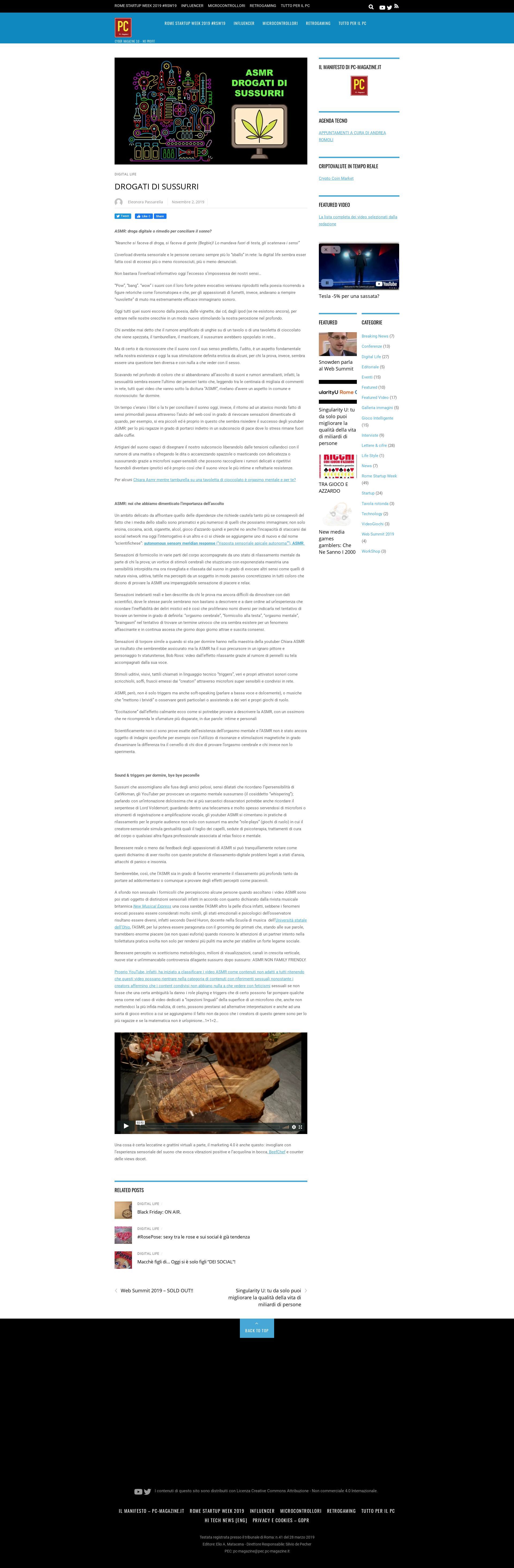 2/11/2019 AUTORE WEB REPORTER PASSARELLA ELEONORA: NUOVE DIPENDENZE COMINCIANO A CIRCOLARE NEL WEB: DROGATI DI SUSSURRI, ASMR, DROGA DIGITALE O RIMEDIO PER CONCILIARE IL SONNO. |