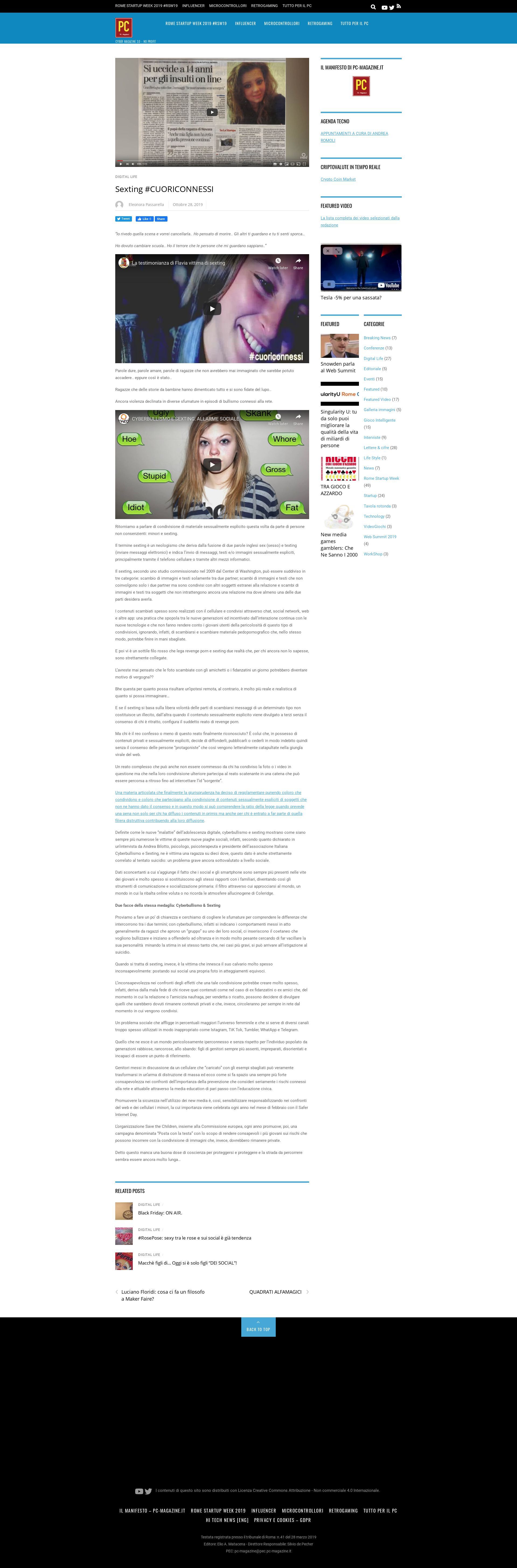 VIDEO ARTICOLO SUL TEMA DEL SEXTING, I RISCHI DEL VIVERE IPERCONNESSI |