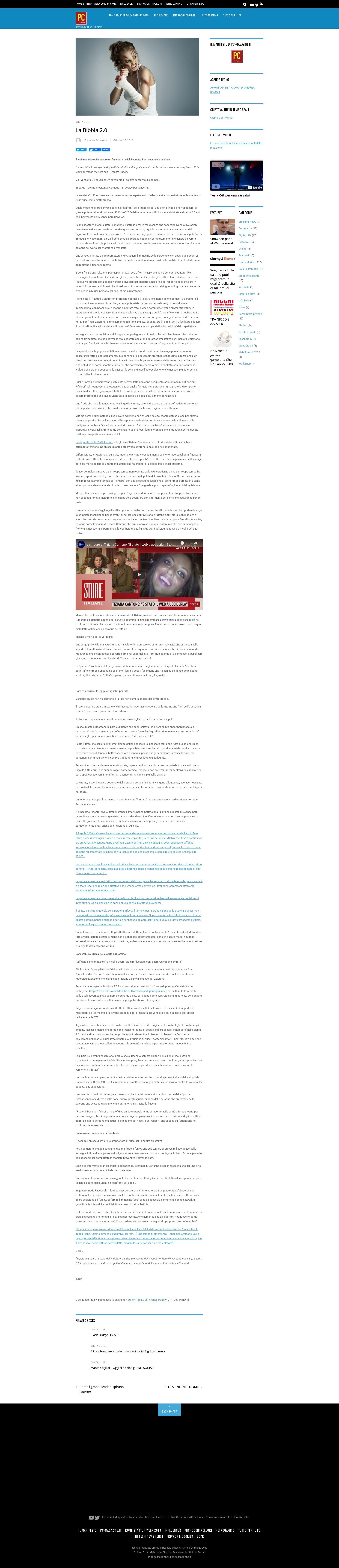 23/10/2019 AUTORE WEB REPORTER PASSARELLA ELEONORA: LA BIBBIA 2.0. IL WEB NON DOVREBBE ESSERE UN FAR WEST MA DAL REVENGE PORN NESSUNO È ESCLUSO |
