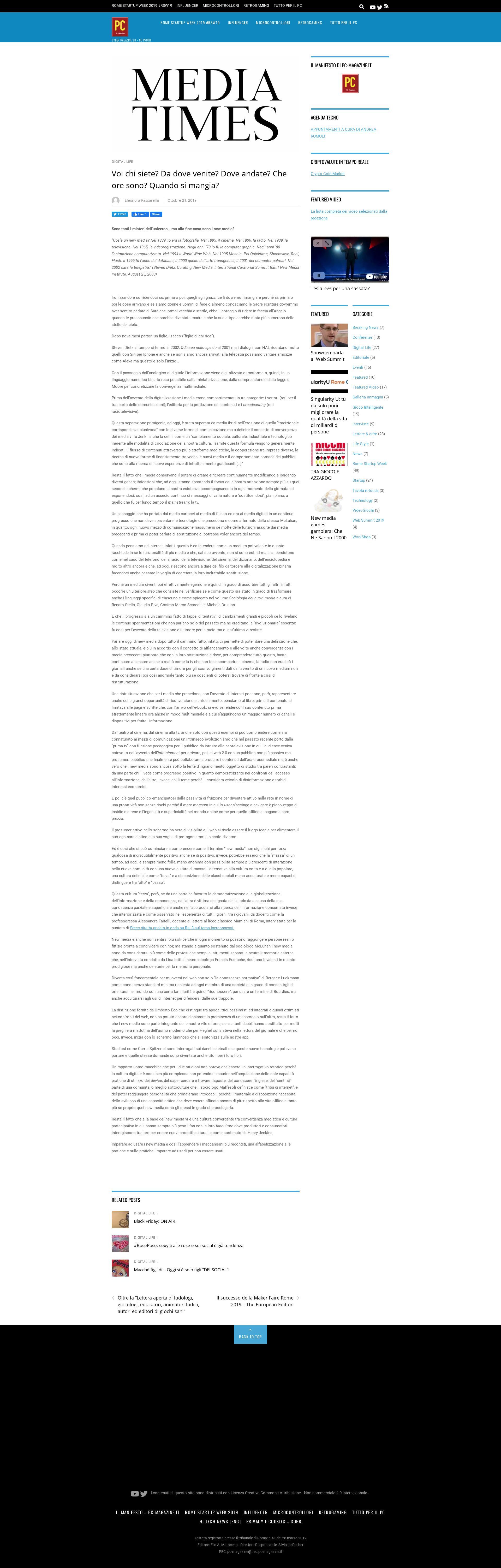 21/10/2019 AUTORE WEB REPORTER PASSARELLA ELEONORA, MEDIA TIMES: UN VIAGGIO ALLA SCOPERTA DI COSA SONO I NEW MEDIA |